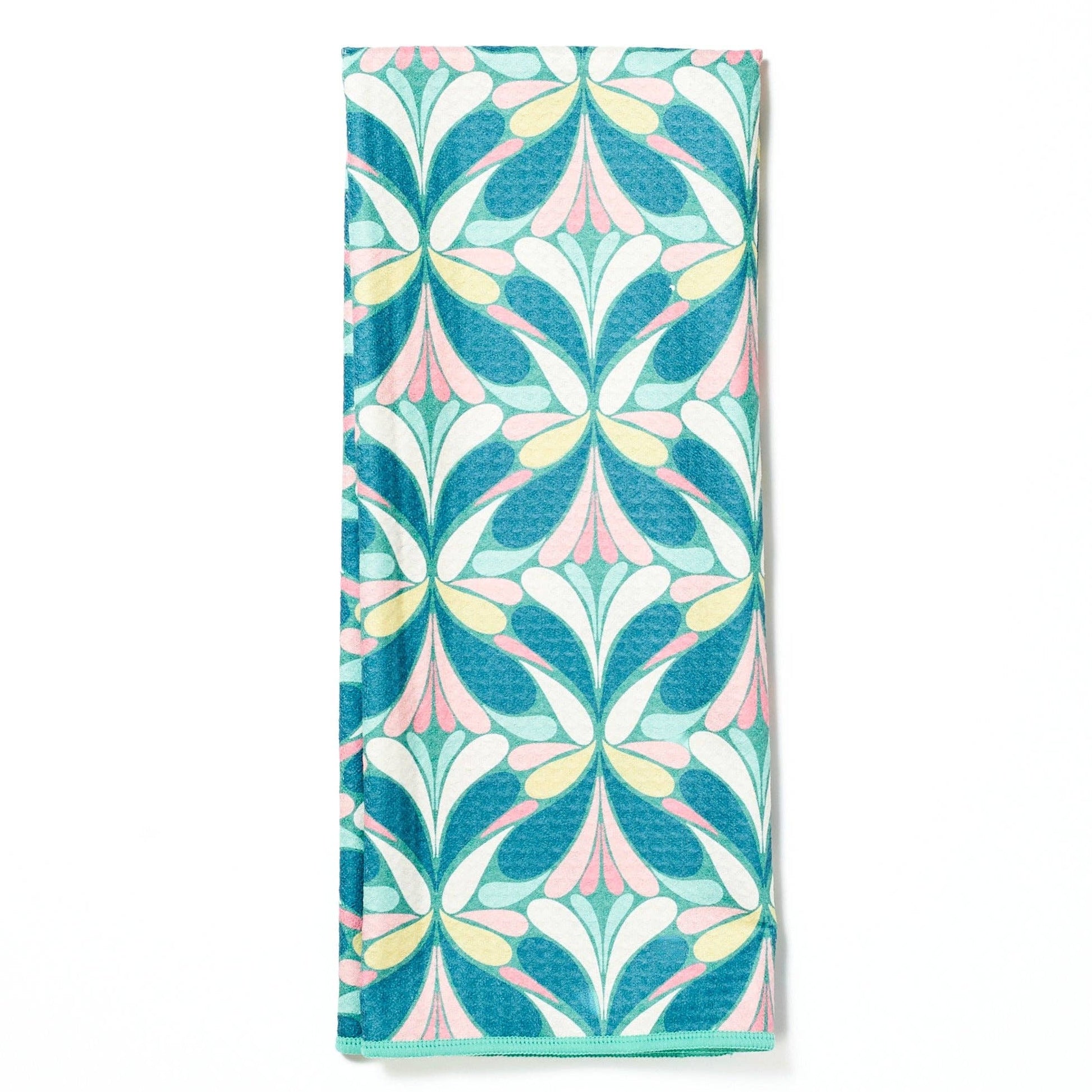 Style: Rebecca Jane Woolbright’s Neighborhood Holiday wreath design features a delightful combination of pastels and jewel tones, adding a festive and colorful accent to your home. Perfect uses: Kitchen or Dish Drying Towel in your Kitchen, Hand Towel in your Bathroom, or Workout Towel. Why You'll Love It: Super Absorbent - absorbs 7 times its weight in water, Quick Drying, Stays Fresh and is Durable. Recycled Impact: 3 bottles were Recycled in making this Towel. Dimensions: Oversized 18"x30". Reversible Towel with Hanging Loop. Material: