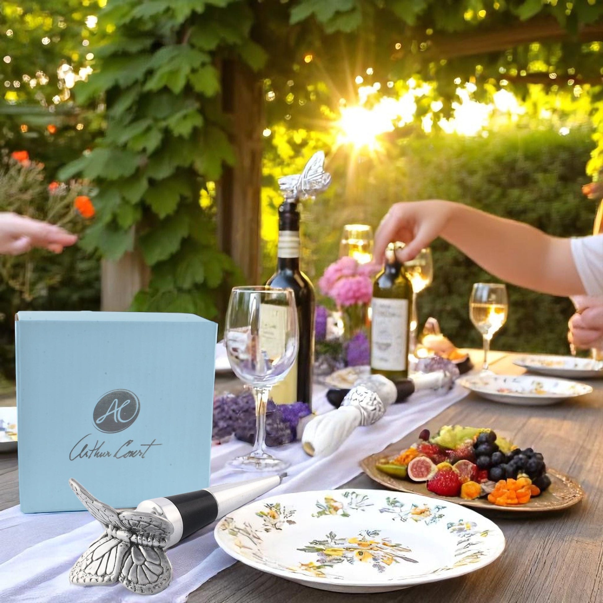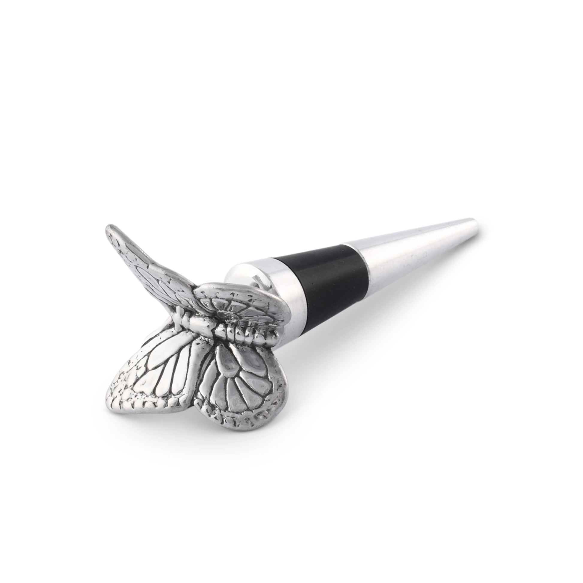 Presenting the Diverse Use Butterfly Bottle Stopper for Entertaining from Arthur Court. Crafted with artistry, this elegant butterfly-shaped stopper effortlessly seals your wine bottles, ensuring freshness and flavor in every sip. Practical for everyday use yet sophisticated enough for special events, this Butterfly Bottle Stopper is the ideal accessory for any wine enthusiast. The detailed butterfly design adds a touch of charm to your barware collection. With its versatility, it is both a tool and decoration, proving to be an ideal gift for wine lovers. Elevate your entertaining experience and make memorable impressions on your guests with this Butterfly Bottle Stopper.