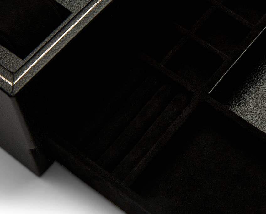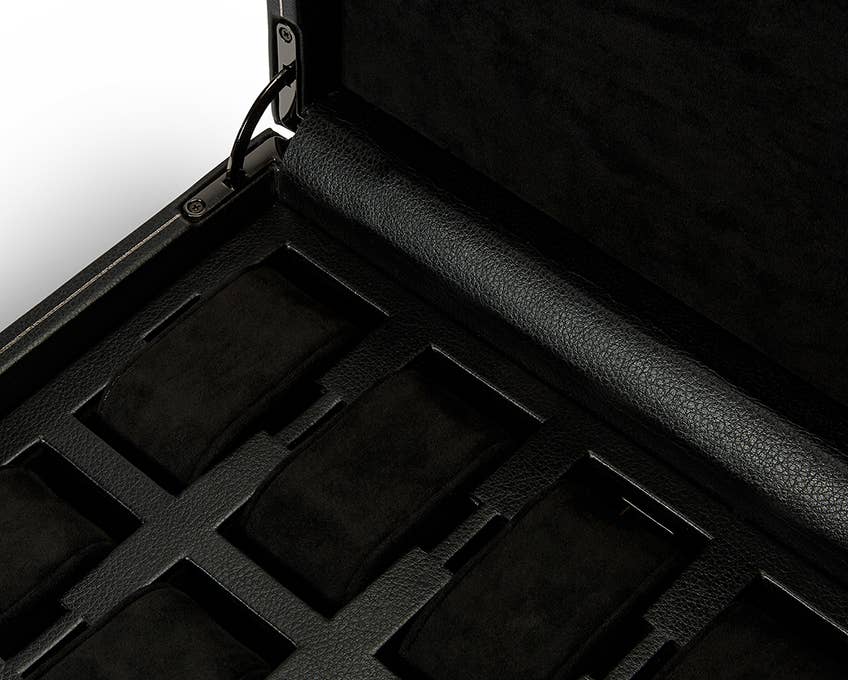 Our British Racing Green collection is a tribute to the illegal racing that took place in Ireland in the early 1900’s. Made with fine pebble grain leather and sumptuous interior suede details. Protect your watches in style in our 10-piece watch box with storage.