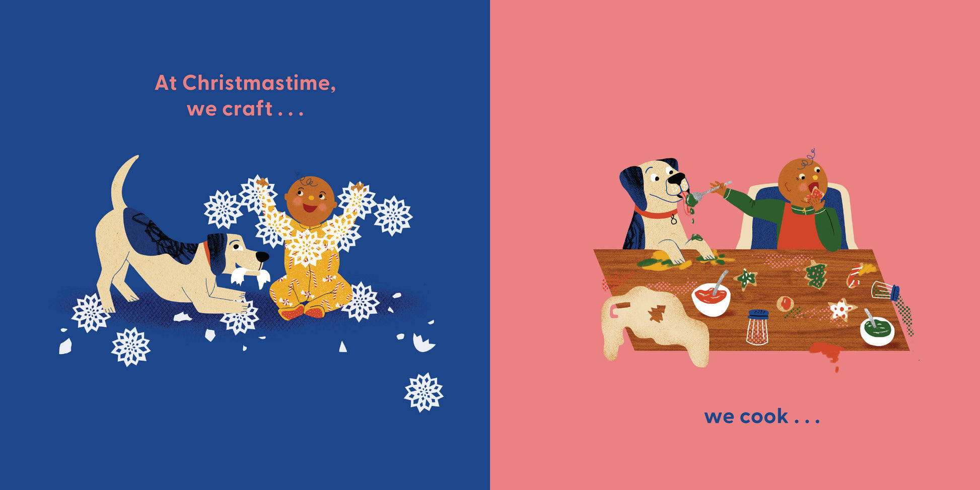 It’s the holiday season, and Dog smells a change in the air. With his new friend Baby by his side, Dog explores the many curious occurrences in his house–like a tree in the living room, new and delicious scents, and fragile balls that are not for fetching–as he gets into the Christmas spirit with his family.