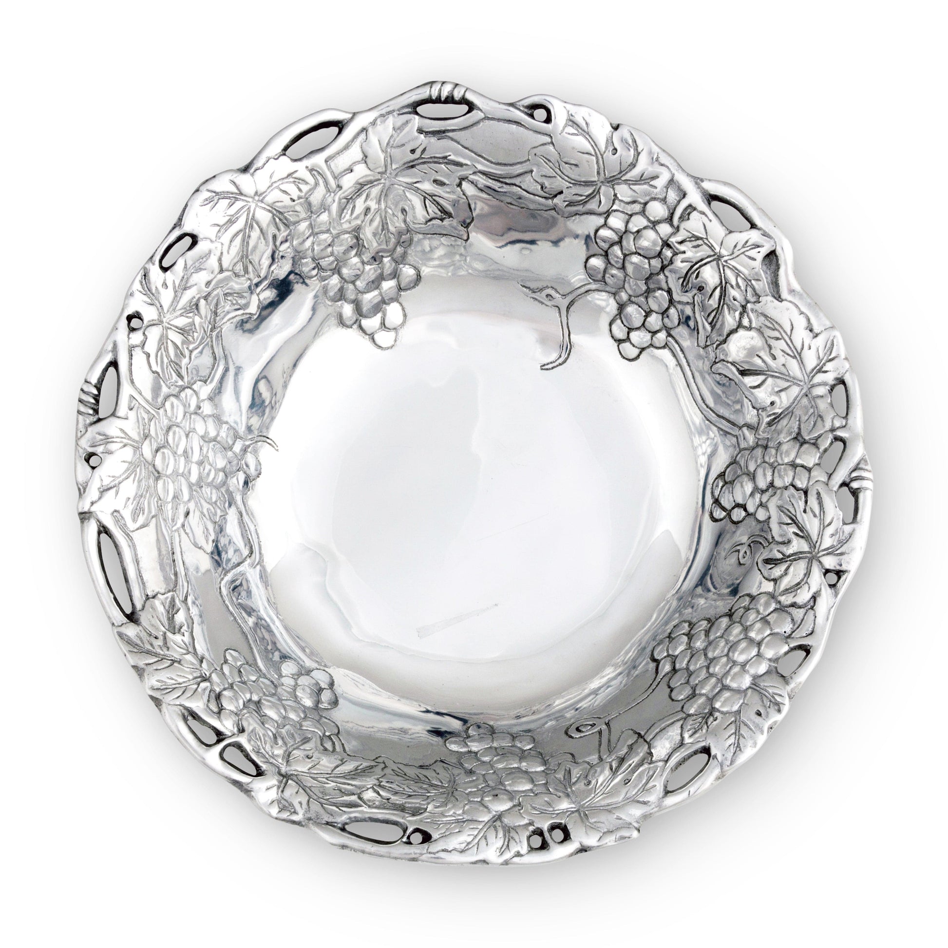 Embrace the refined elegance of Arthur Court's Grape Bowl, crafted from premium aluminium material. Its intricate grape-themed design brings a touch of sophistication to any space. With an ideal balance of beauty and functionality, this elegant bowl is not just a decorative piece; it's an expression of style and elegance. Perfect as a unique bridal shower gift or as Arthur Court's grape-themed bowl: an Ideal gift for Christmas, it's time to make your loved ones feel special. Beyond its captivating aesthetics, this high-quality aluminium bowl guarantees years of service, retaining its shine and allure over time. Don't miss the chance to upgrade your kitchenware with Arthur Court's Grape Bowl.