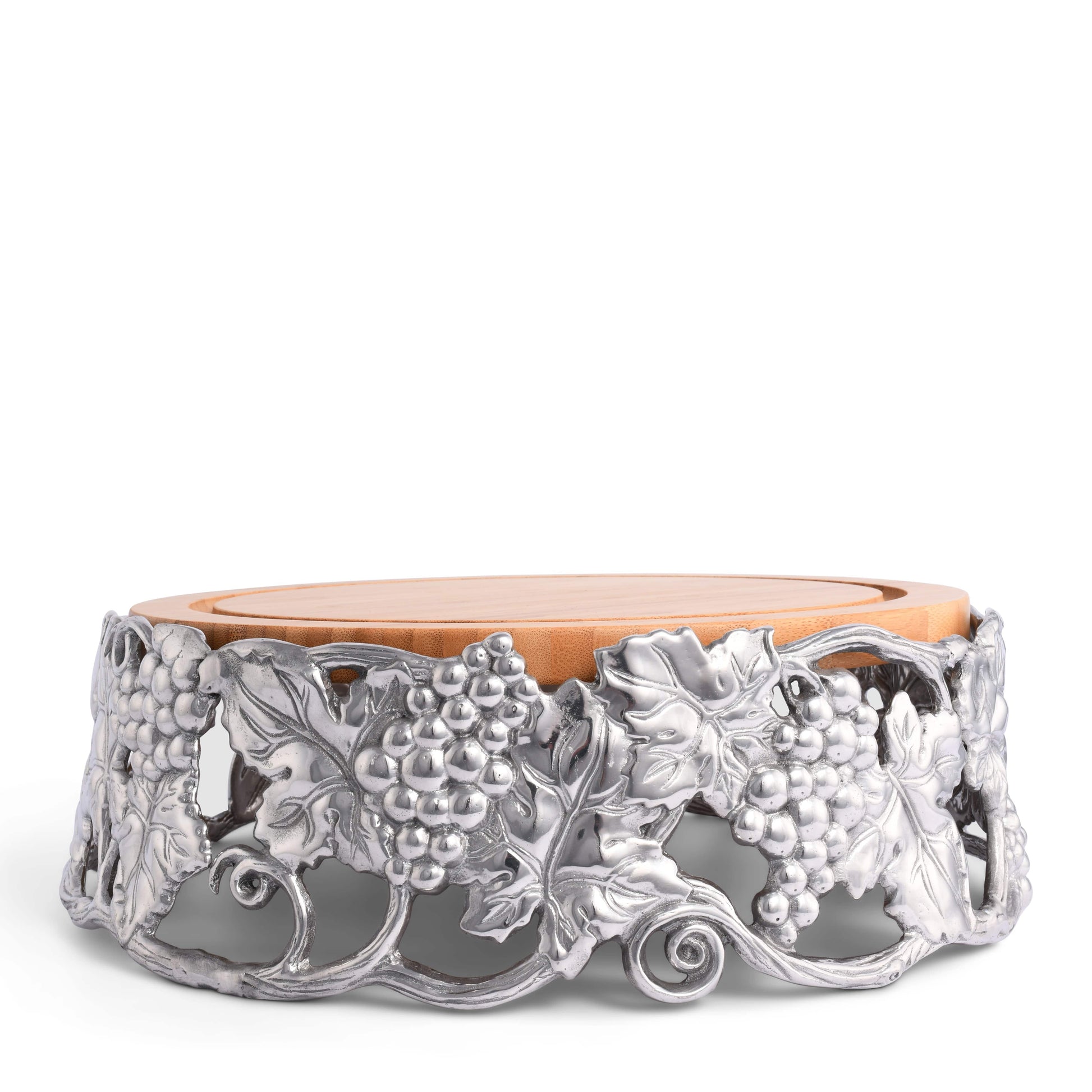Present your gourmet cheeses like a true connoisseur with the Arthur Court Grape Cheese Pedestal: Luxurious Aluminium Serveware for Elegant Hosting. A captivating blend of design and function, this piece is a work of art: meticulously hand-crafted, charmingly detailed, and undeniably robust. Crafted from high-end aluminium, the Arthur Court Grape Cheese Pedestal boasts stunning grapes and leaves that appear as though they're dangling from an overhead vine—a testament to Arthur Court's mastery in metalwork. Large enough for a generous cheese selection, it's an ideal choice for wine and cheese events or casual gatherings. The High-End Hand-Crafted Arthur Court Grape Cheese Pedestal, indeed, makes for Perfect Bridal Shower Gifts. Being more than just a pretty piece, It's Arthur Court's Grape Cheese Pedestal for Versatile Party Hosting that never fails to impress.