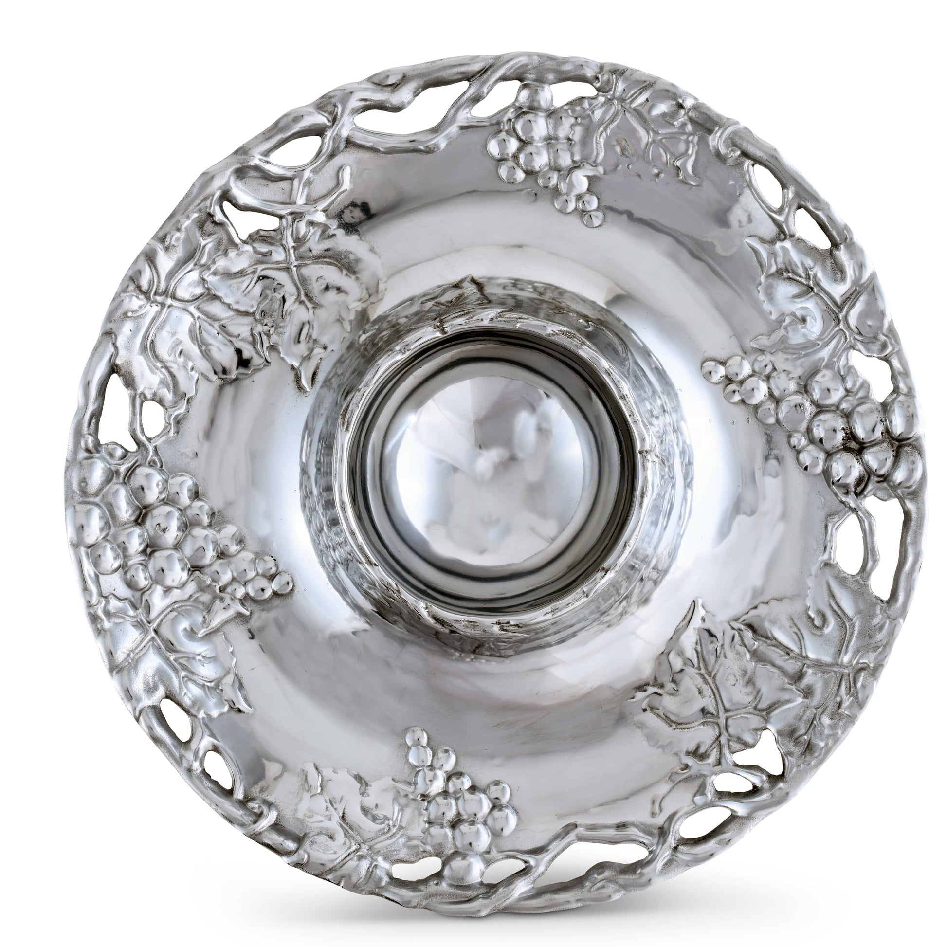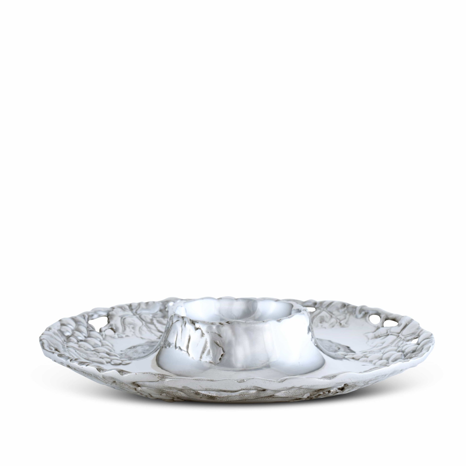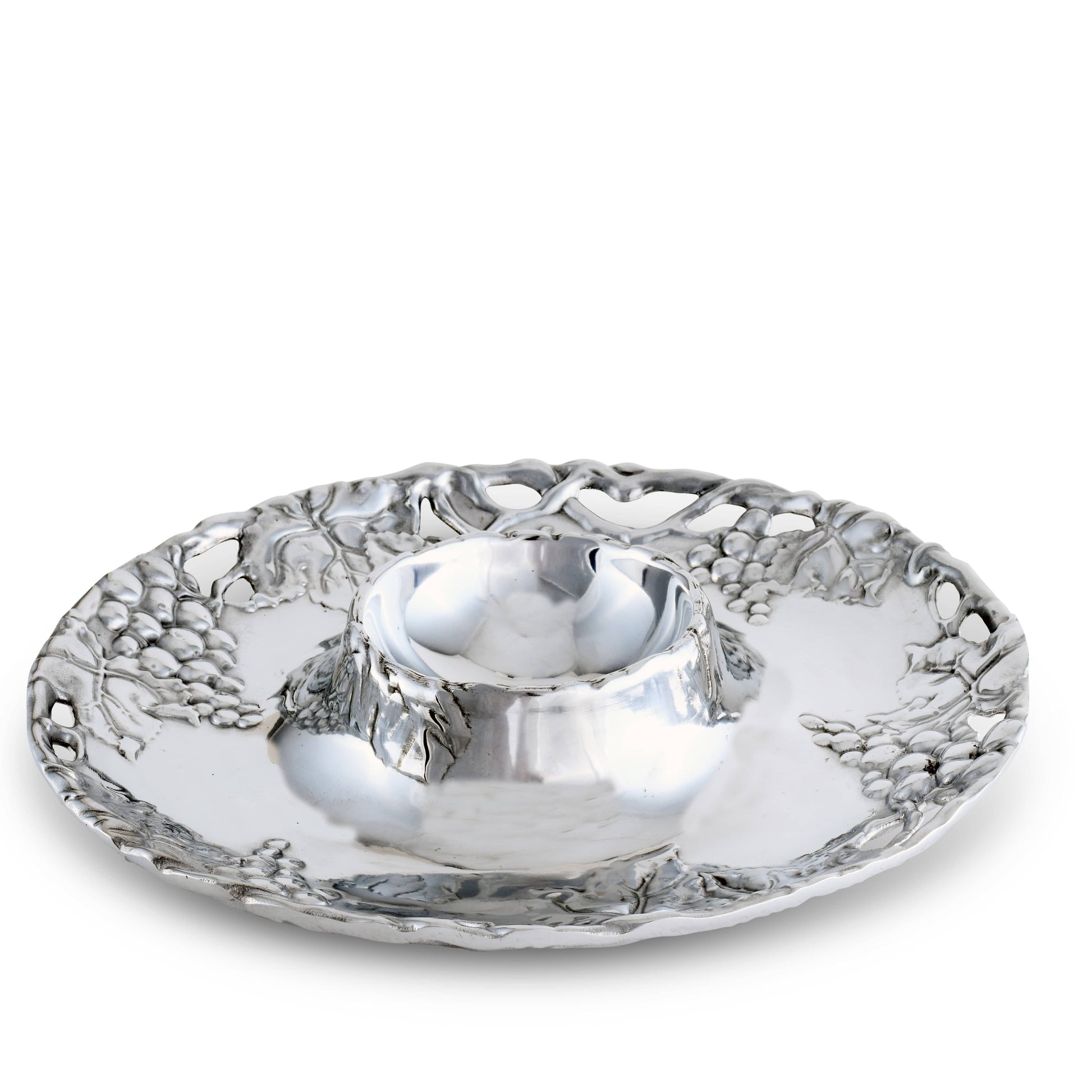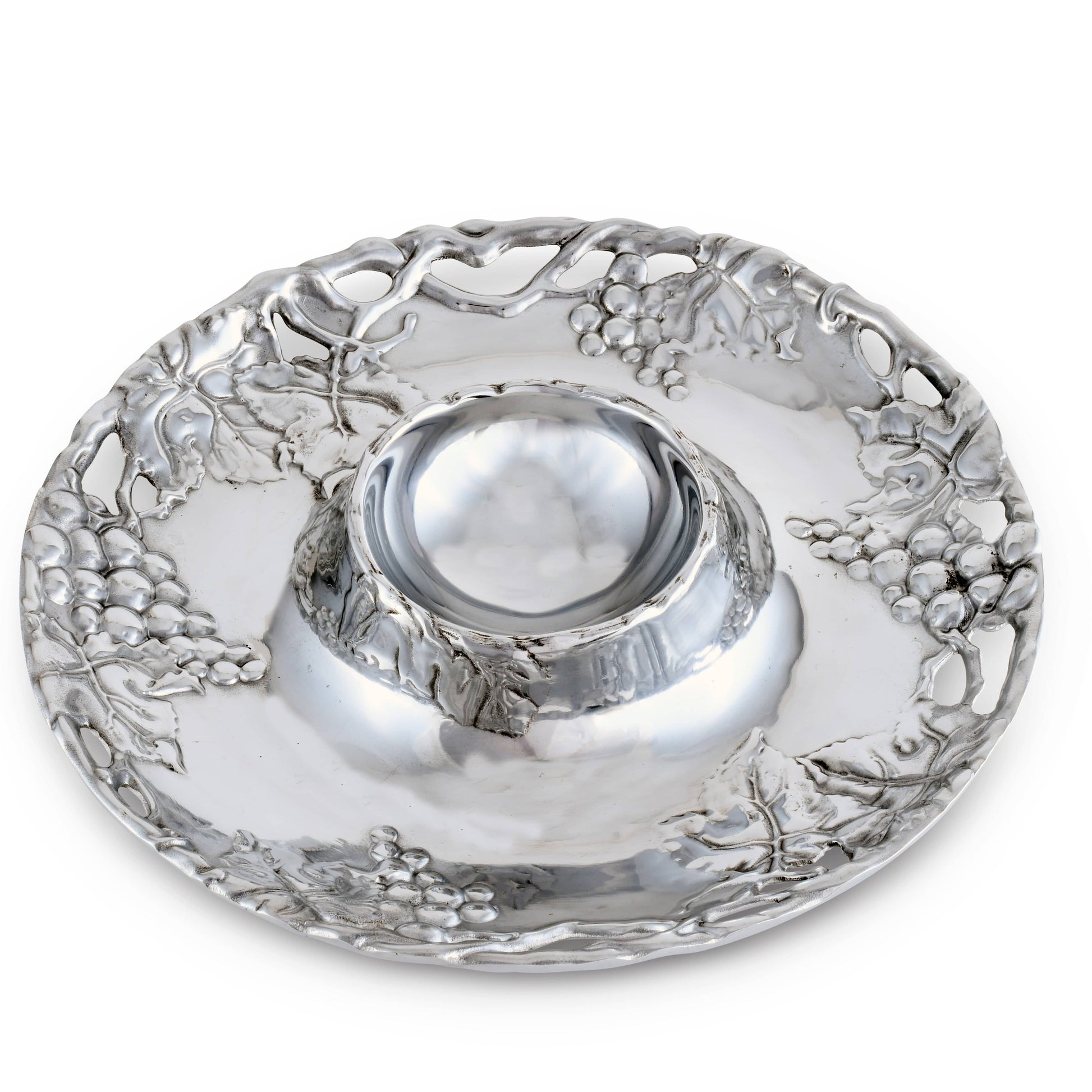 Enhance your hosting ambiance with Arthur Court's Grape Chip and Dip - a custom-made design for elegant hosting. Belonging to Arthur Court Grape Collection - known for its premium aluminum serveware, this piece adds a touch of luxury and delivers a unique gifting option. The intricate grapevine motifs provide exquisite detail, adding flair to any occasion. The Arthur Court's Grape Chip and Dip is not only aesthetically pleasing but versatile too. Removing the dip bowl reveals a larger serving area, making this a serving dish suiting all occasions. With its unique craftsmanship and design, this piece promises to add a touch of elegance to your gatherings.