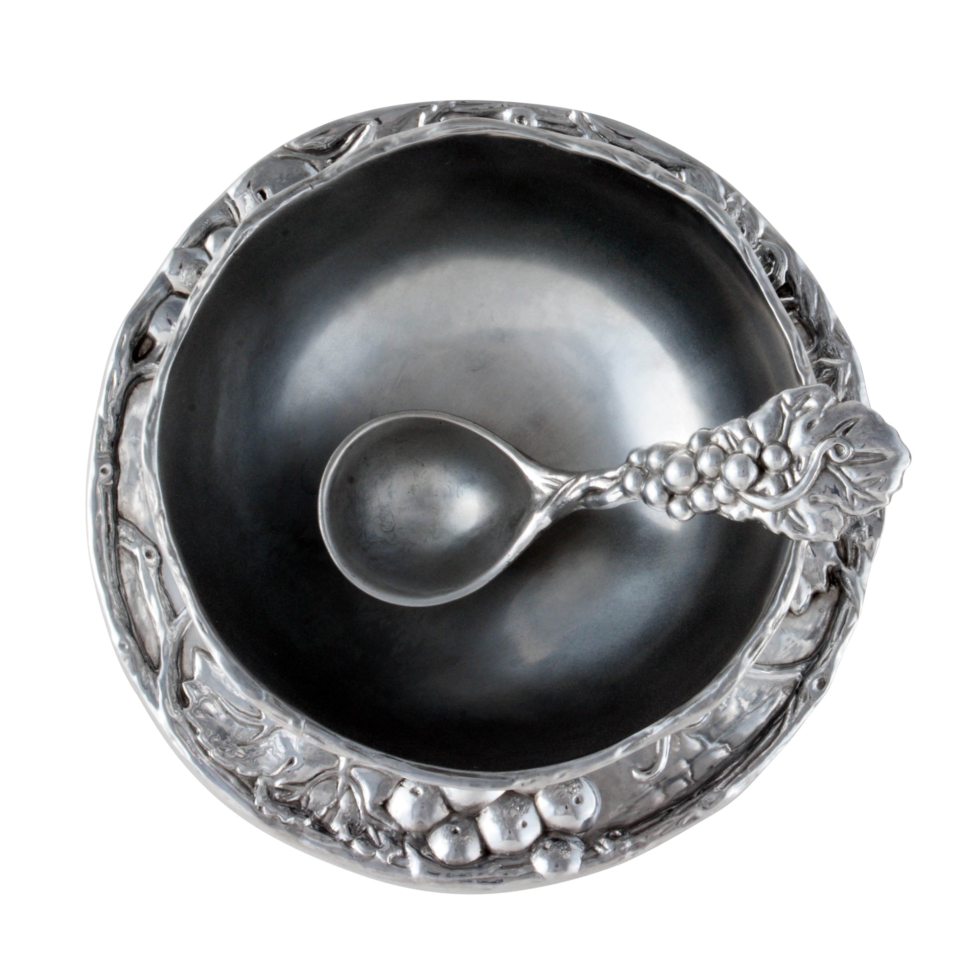 Make your entertaining sophisticated and your dining setting breathtaking with the Arthur Court Designs Aluminum Grape Condiment Server for Sophisticated Entertainment. The unique grape design, inspired by Arthur Court's Grape Collection Condiment Server, is an alluringly chic attribute that turns any occasion into a grand event. With its exquisite craftsmanship, this piece is not only a functional server for your condiments, but also a beautiful decoration that adds flair to your table. What's more, Arthur Court's Grape Designed Condiment Server makes for a versatile addition to your home, blending perfectly with your existing decor and servingware. Precisely crafted and well-measured, it is the ideal size for holding your favorite condiments while creating a visual feast for the eyes. A chic gift for wine connoisseurs, the server equally impresses guests with its impeccable style and thoughtful design. So indulge your guests, treat a friend or simply enrich your own entertaining style with this stunning Grape Condiment Server.