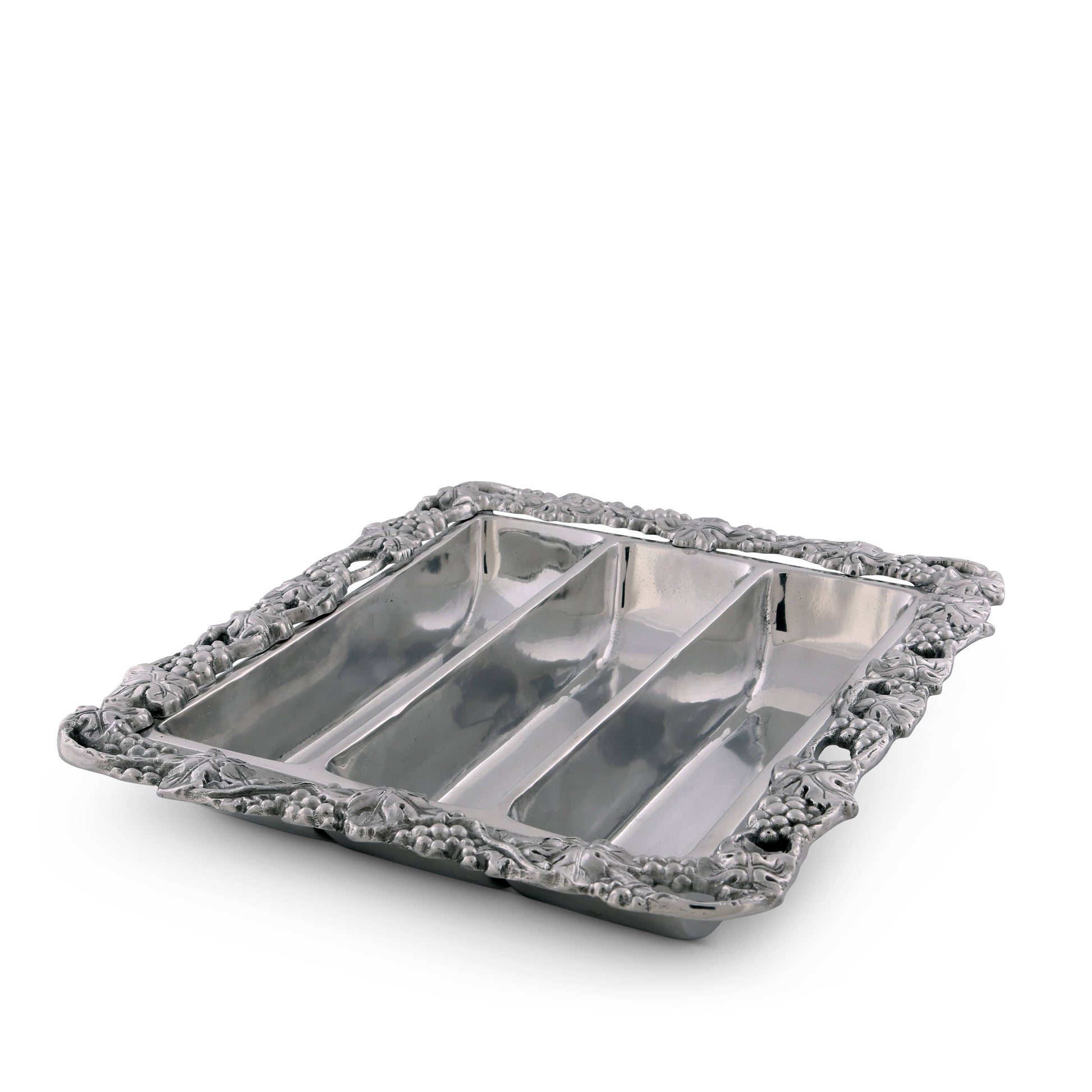 Behold the exquisite Arthur Court Grape Collection. Perfect for Outdoor Dining Scenarios, this collection features a unique grape-themed pattern that exudes elegance and style. The hand-crafted, grape-decorated Aluminum Flatware Caddy is not only a practical piece for hosting outdoor meals but makes an Ideal Kitchen Gift too. Enjoy the finely crafted details of grape clusters and leaves that are part of each piece. The dimensions of each piece are carefully designed for versatile use, making it much more than just a flatware caddy. Experience the craftsmanship with Arthur Court and elevate your outdoor dining experiences.