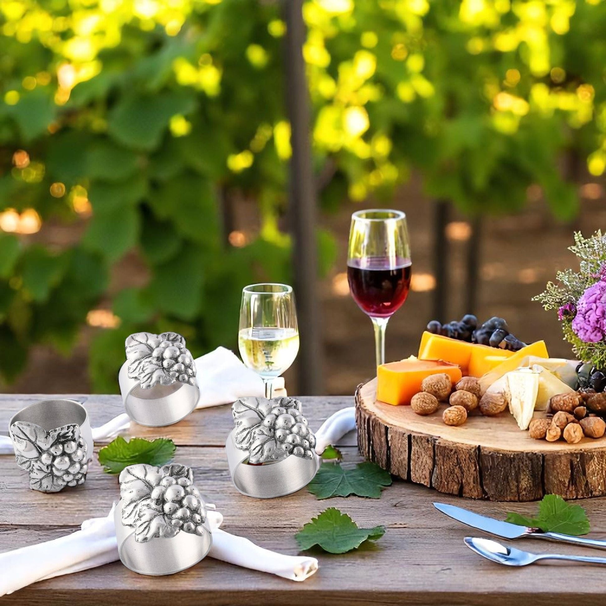 Add a touch of elegance to any dining occasion with our Grape Napkin Rings. Handcrafted with attention to detail, these napkin rings are perfect additions to your festive table decor. Whether you're hosting an upscale dinner party or looking for a unique wedding gift option, these high-quality Grape Napkin Rings fit the occasion splendidly. Their refined design brings an element of sophistication to the table, whilst their sturdy craftsmanship ensures they can be enjoyed for years to come.