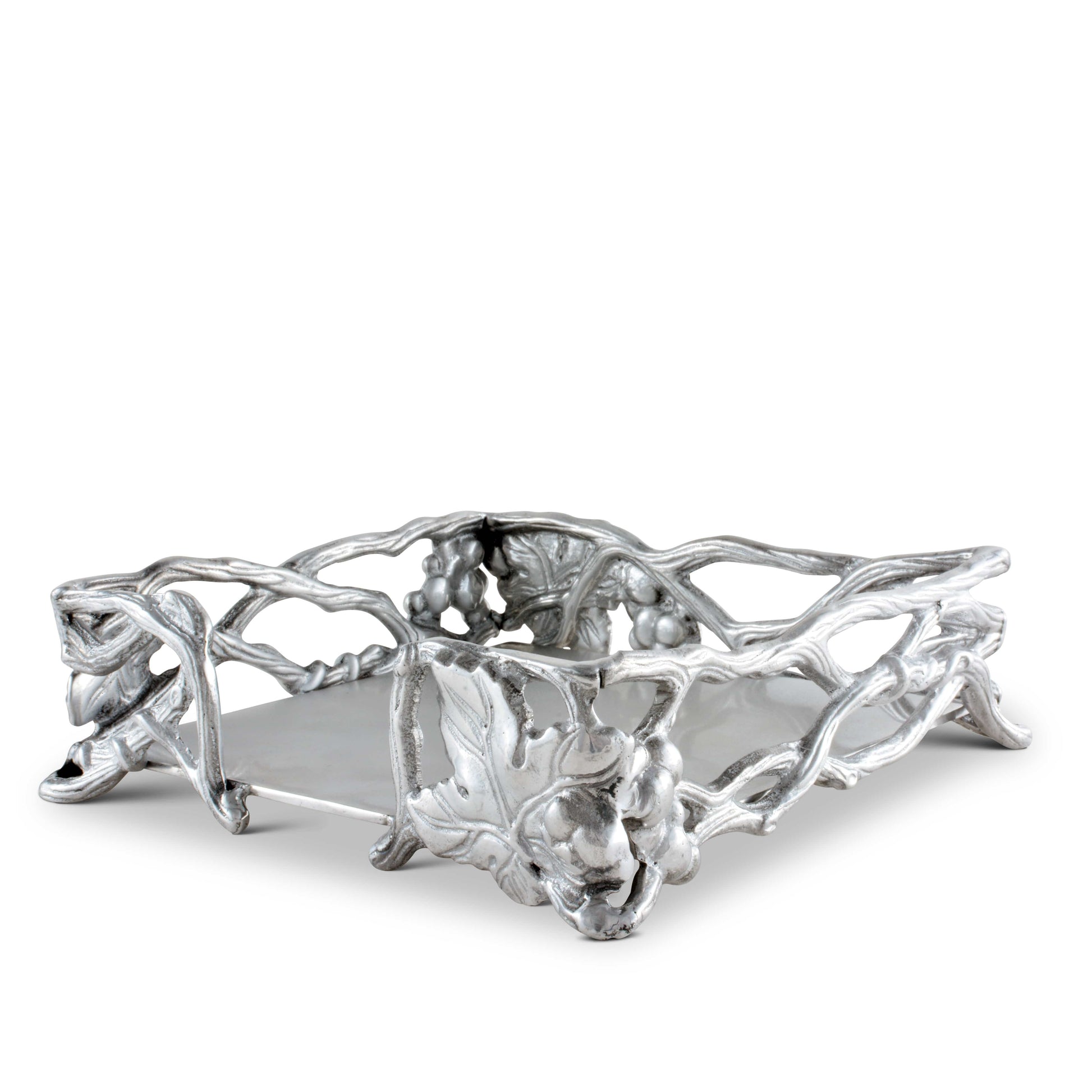 Elevate your home with the Grape Collection's Open Vine Napkin Box - a unique gift for home decor enthusiasts. Expertly crafted, this piece turns any gathering into an event. The Arthur Court's Grape Collection Open Vine Napkin Box adds a touch of sophistication and style to any dining room. Hand-finished to perfection, it embodies the spirit of the Grape Collection and makes a perfect wedding present.