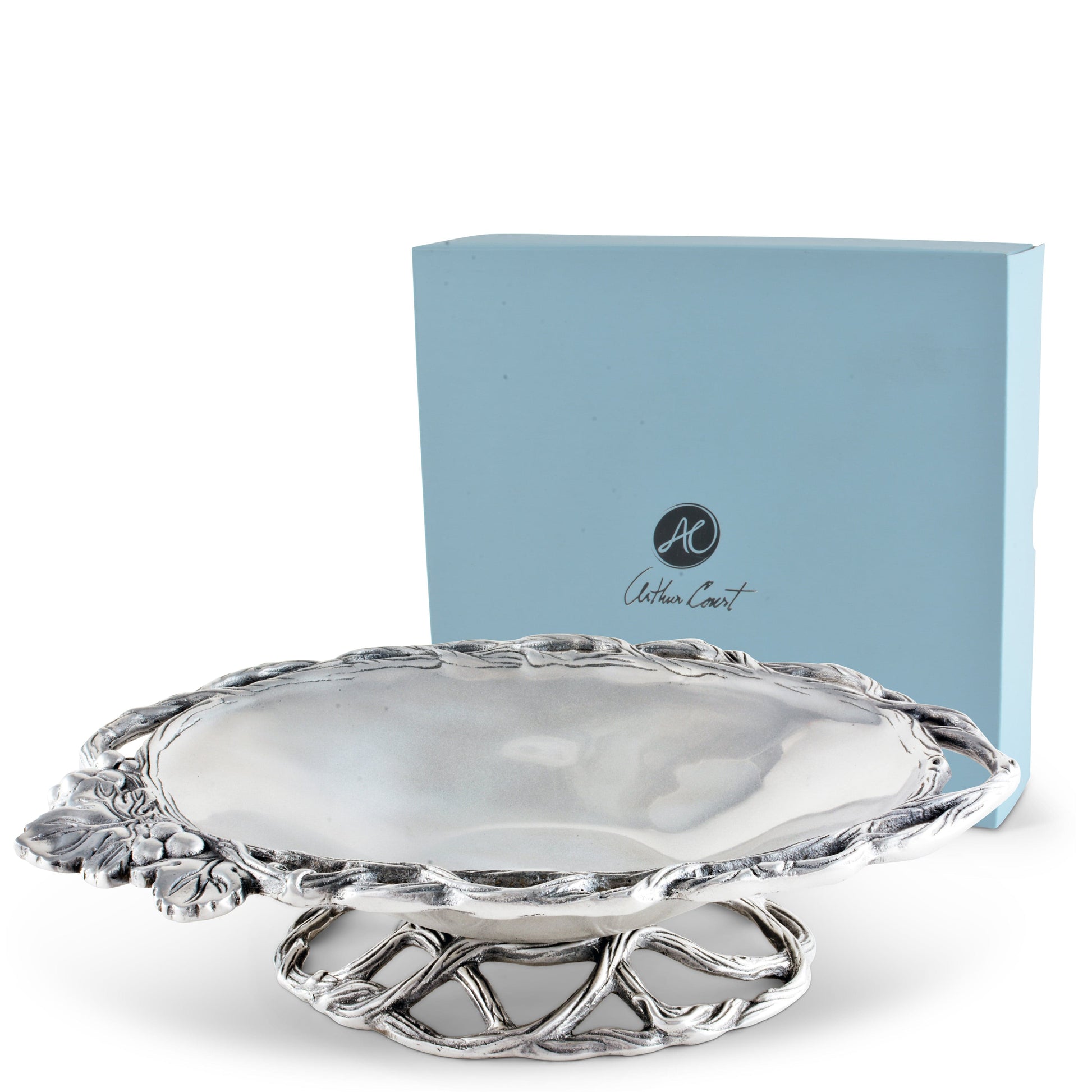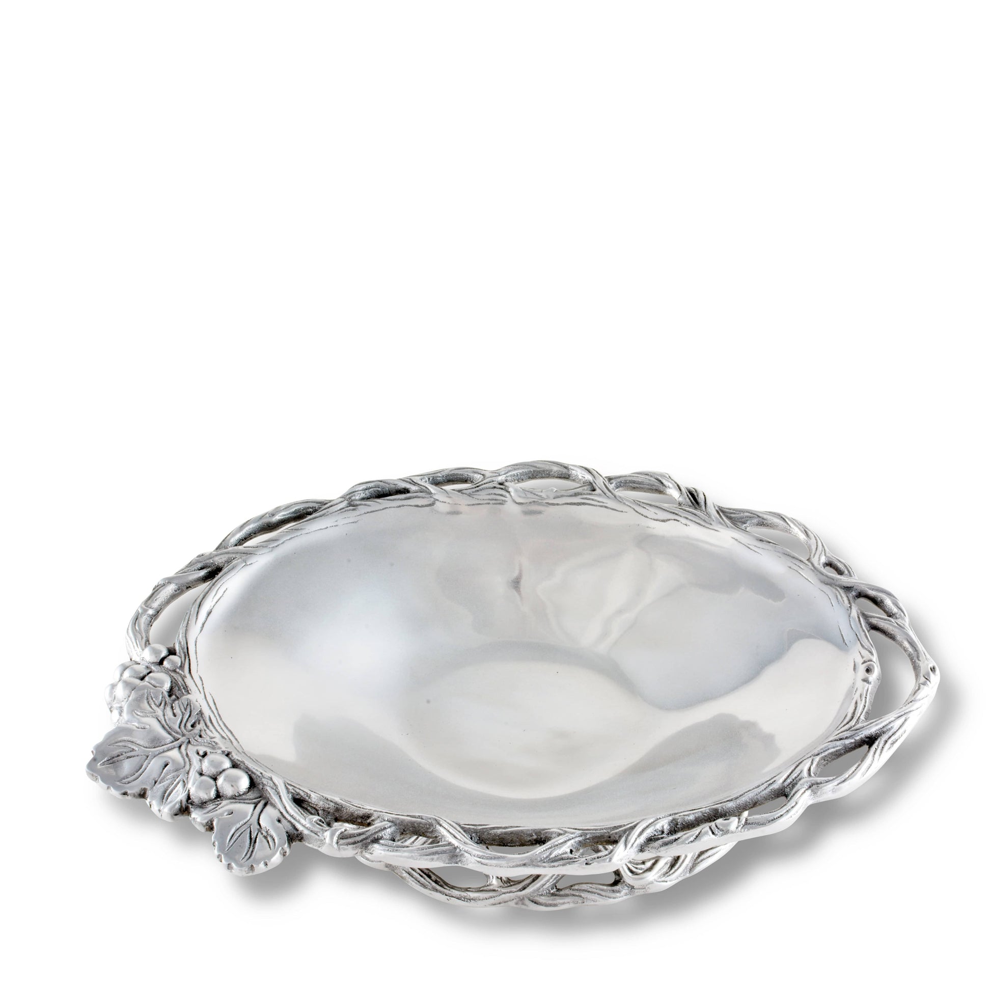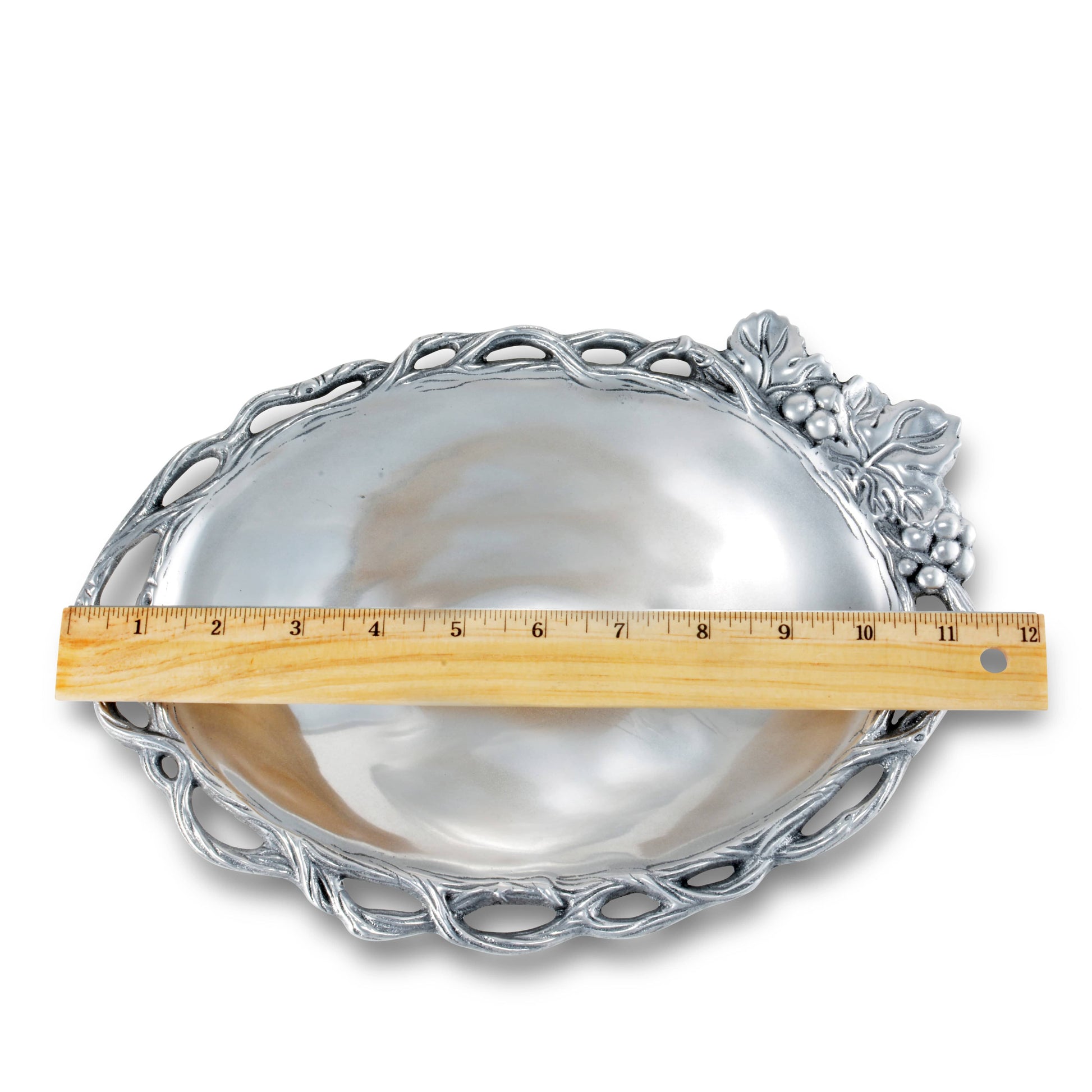 Create a stunning dining experience with the Grape collection's vegetable dish, suitable for all occasions. Its elegant design and intricate detailing make it a perfect wedding gift. Arthur Court's Vegetable Dish features unique aluminum craftsmanship, adding a touch of luxury to your table settings. Ideal for serving your favorite vegetables, it's a versatile piece that fits well with any dinnerware. Crafted with love and precision, this vegetable dish exemplifies Arthur Court's commitment to superior quality and unique design.