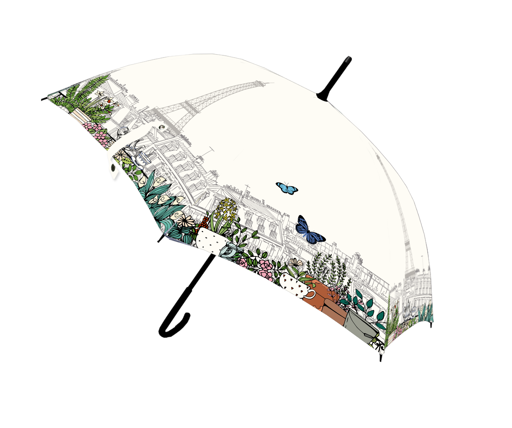 Transport yourself to a Parisian balcony overlooking the city of lights. The GUY DE JEAN "BALCON PARISIEN" is a truly elegant umbrella featuring a charming print of the Eiffel Tower, ready to elevate any rainy day. It's designed for ease with an automatic opening and a gracefully curved black acetate handle. This unique umbrella is a testament to authentic French artistry, handcrafted with passion in our workshop in Donzy.
