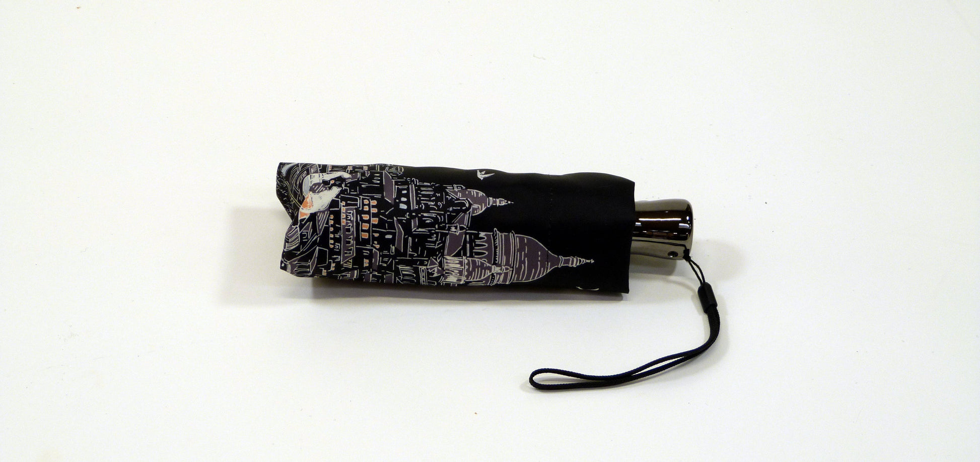 Embrace the romance of Paris with the GUY DE JEAN "MONTMARTRE" umbrella. This beautifully small and vibrant umbrella is designed for life on the go. Featuring a convenient automatic open and close function and a pretty nickel-plated handle, it easily fits into your bag, ready for any sudden downpour. Handcrafted with the greatest care in our Burgundy workshop, its compact size is perfect for sheltering a single person while offering a colorful view of the Montmartre cityscape.