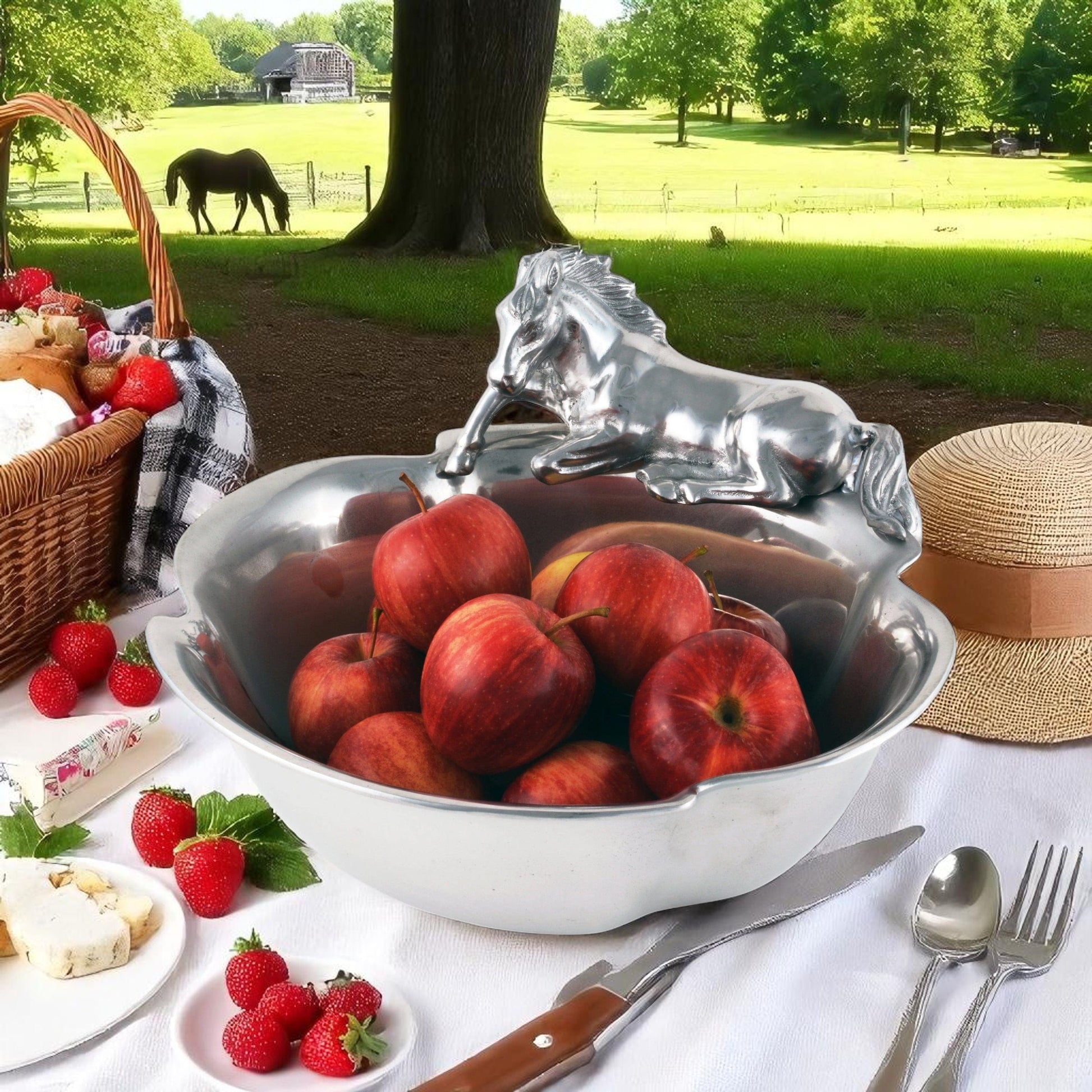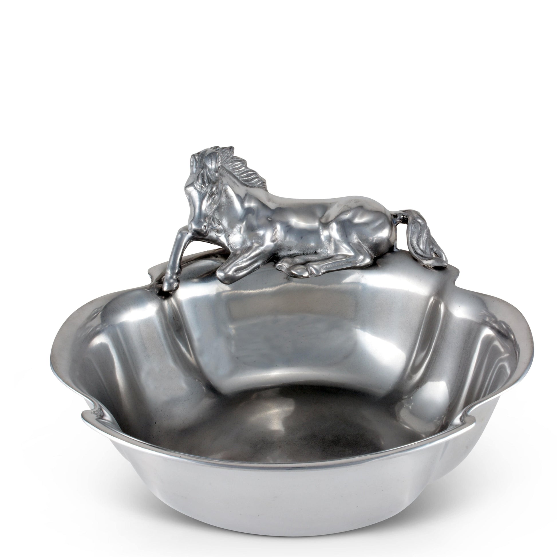 Make every occasion special with Arthur Court's Equestrian Collection: Unique Horse 12-1/2 Bowl. Ideal for versatile entertaining, this high-end aluminum bowl is sure to impress your guests. Its unique design and exquisite craftsmanship hail from Arthur Court’s Equestrian Collection, known for its unrivaled aesthetics. Use it for your food presentations or just as a centerpiece, it never fails to stand out. Experience the blend of practicality and elegance.