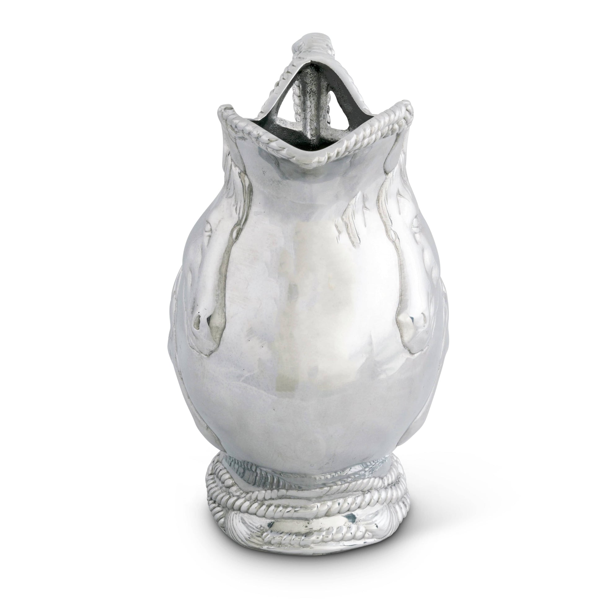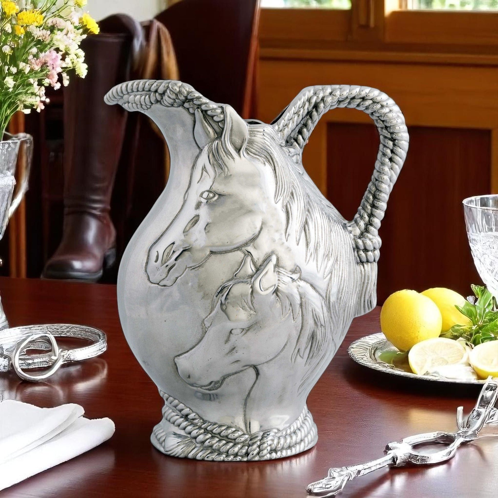 Arthur Court's Equestrian Collection brings to you the Ideal Gifting Horse and Rope Pitcher. Impeccably crafted, it serves as an emblem of equestrian beauty and offers a high versatility for various entertaining scenarios. A visual delight, this pitcher is made with detailed precision featuring a horse-shaped handle intertwined with a sturdy rope-shaped spout, making it a centerpiece for your gatherings. Beyond its functionality, it's a splendid canvas celebrating equestrian aesthetics. Thinking for a distinct birthday gift? Arthur Court's unique Horse and Rope Pitcher offers a compelling choice. Dive into the world of sophistication and elegance with this remarkable piece from Arthur Court's Equestrian collection.