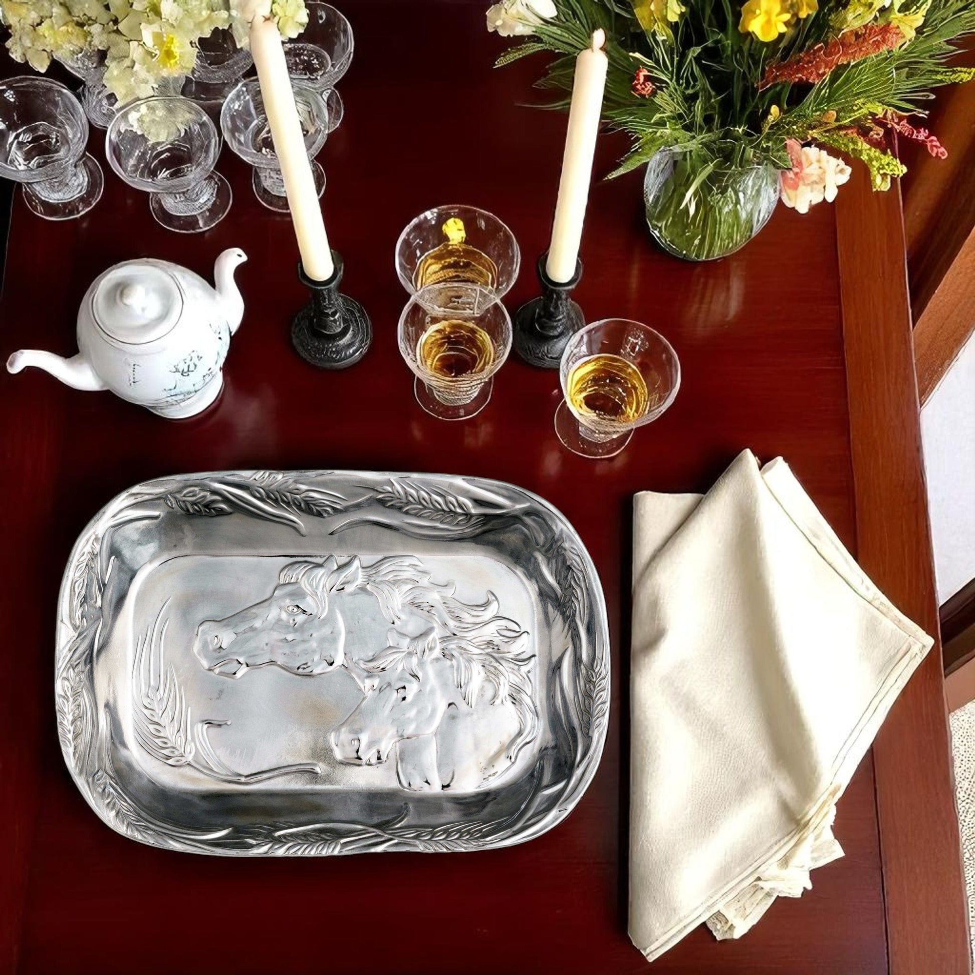 With its generous dimensions, this catch all tray can hold a variety of items keeping your space organized. Serve your guests in style during festive entertaining or delight a horse-loving friend with this Arthur Court's horse catch all - it's a perfect housewarming gift for equestrian enthusiasts.