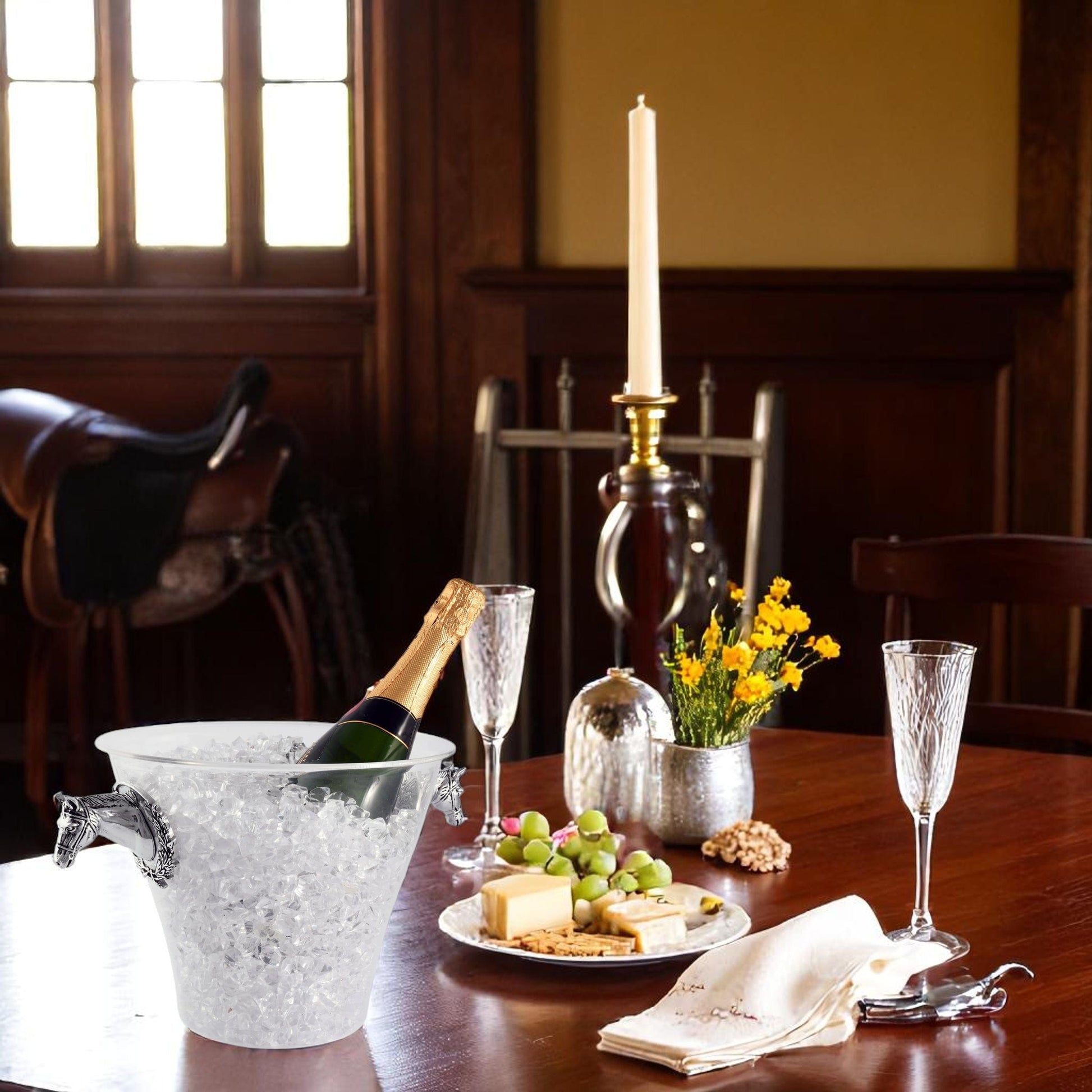 Bring sophistication and style to your bar décor with Arthur Court's Designer horse-themed ice bucket for stylish entertaining. Crafted with an exquisite attention to detail, this icebucket boasts a unique horse-head handle that adds a touch of equestrian elegance. A perfect centerpiece for cocktail evenings, our ice bucket is more than just functional, it's a piece of art. Not only does its aesthetic charm elevate your space, but this unique horse-themed barware for cocktail evenings also ensures your drinks stay perfectly chilled. The elegant acrylic ice bucket with horse-head handle is light yet durable, with a generous capacity for ice. It's designed to celebrate your love for horses and high-quality barware in a remarkable way. This ice bucket also makes the perfect meaningful gift for horse enthusiasts, ensuring their entertaining is immediately upgraded to a style befitting them.
