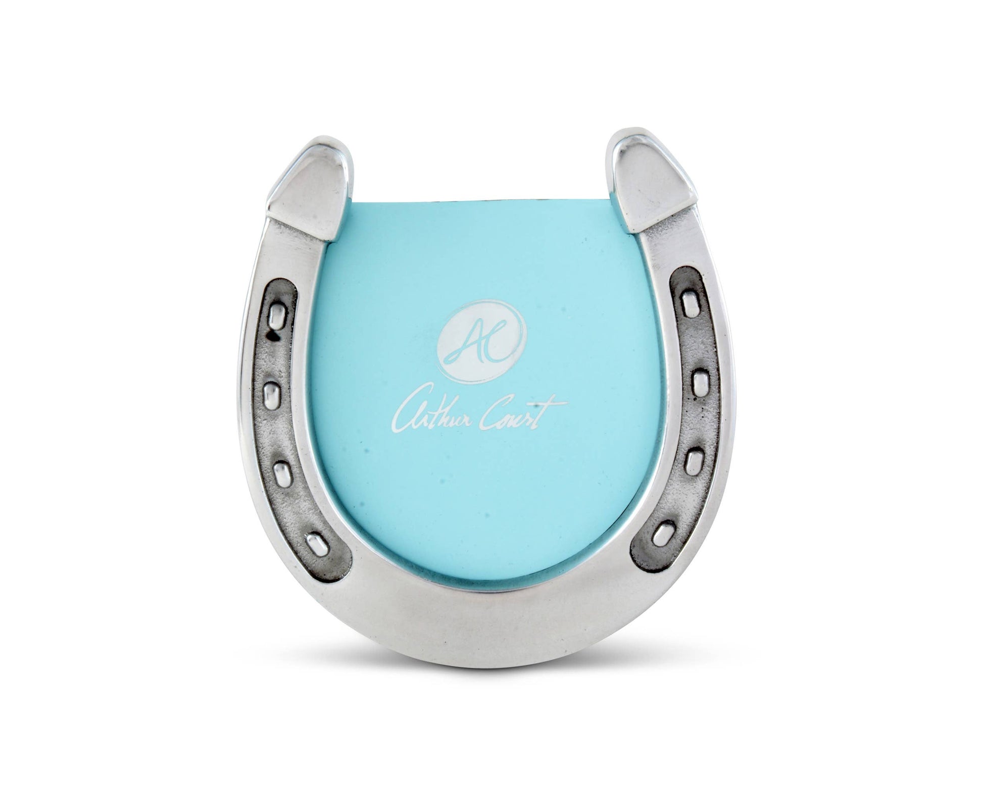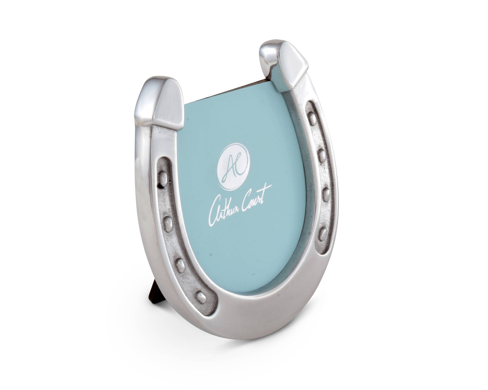 Slide your favorite picture into this unique Horseshoe Photo Frame from Arthur Court. Size: 3 1/2" x 4" photo. 5 1/2"H x 5"W Care: Dust with damp cloth. Will not tarnish