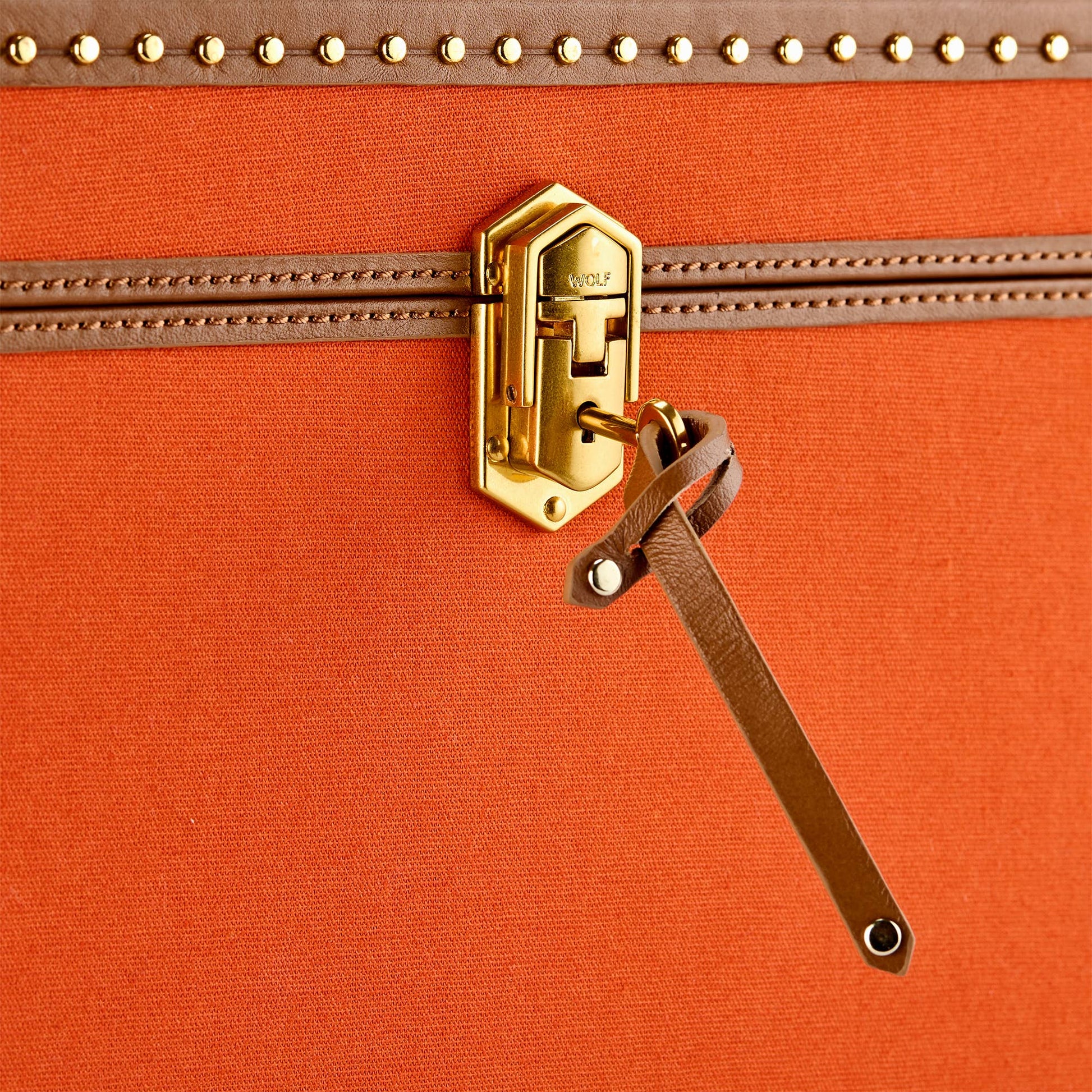 The Ida Trunk Jewellery Box in vibrant orange is a testament to WOLF's dedication to perfect design and innovation. This five-generation family-owned company has been protecting precious items for 190 years. This jewelry box, a symbol of WOLF's enduring legacy, ensures your jewelry is safely stored, nourishing and upholding your story and priceless pieces.