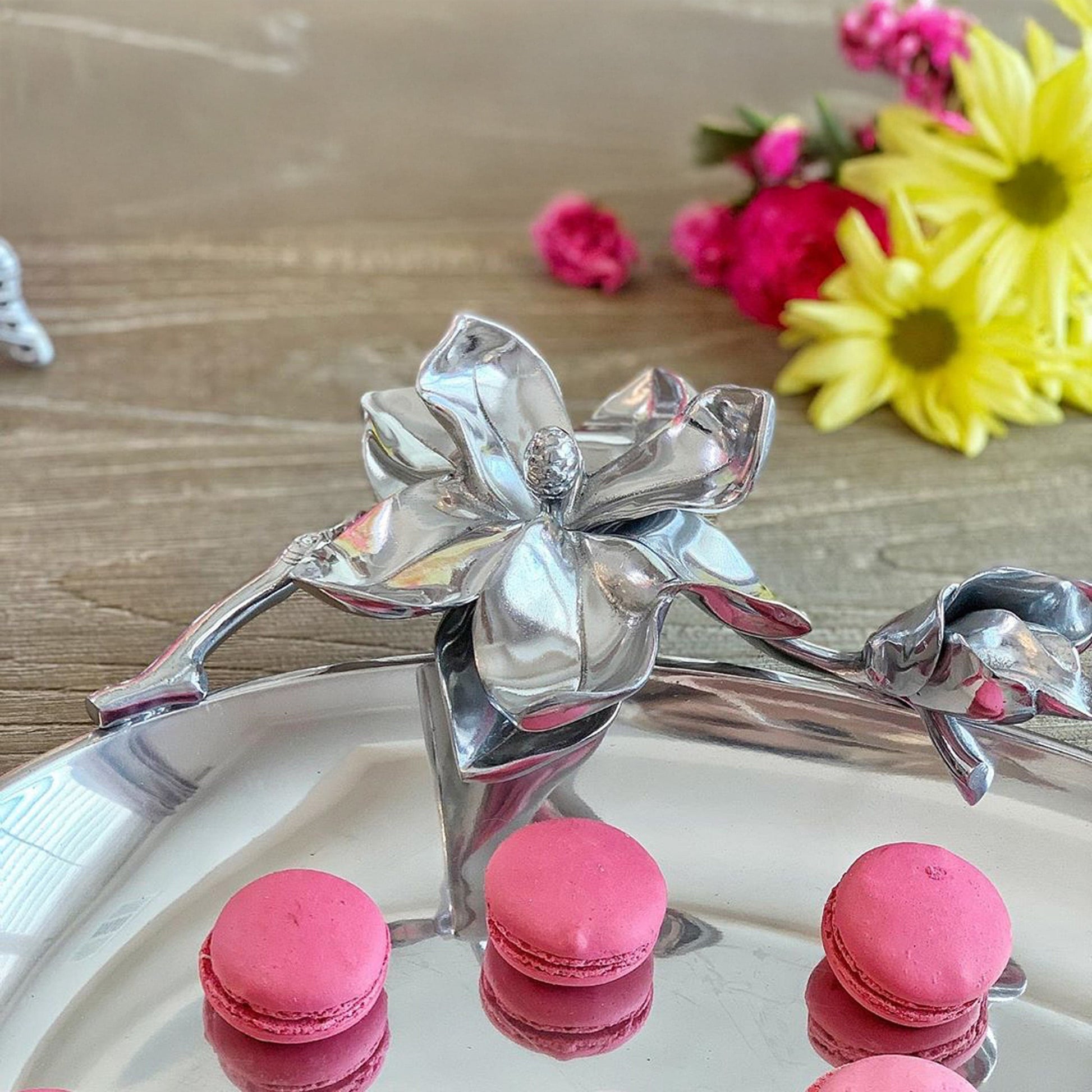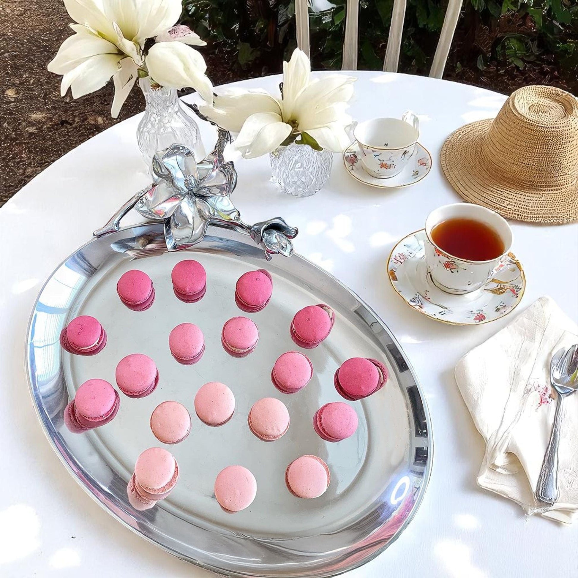 The celebration of love, a wedding anniversary or a new home is made even more momentous with a special gift. This Unique Gift for Wedding Anniversaries: Magnolia Flower-Designed Oval Tray by Arthur Court from the Flora collection is a perfect choice. The tray's detailed magnolia flower design and elegant curve make it a stunning piece of decor and a practical serving accessory. Arthur Court's Flora Magnolia Oval Platter also serves as an Excellent Birthday Gift for Gourmets, with its shine and depth impressing even the biggest food enthusiasts. If you're looking for a Luxurious Gift for Housewarming, Arthur Court's Flora Collection Magnolia Tray can be just the thing, adding elegance and refinement to any dining occasion. Crafted meticulously with Arthur Court's premium aluminum alloy, this tray is as durable as it is beautiful. Measuring approximately 24 inches in length and 9 inches in width, it's the perfect size for serving. Versatility complements its beauty and durability, whether you're serving appetizers, main courses, or desserts, this tray can handle it all.