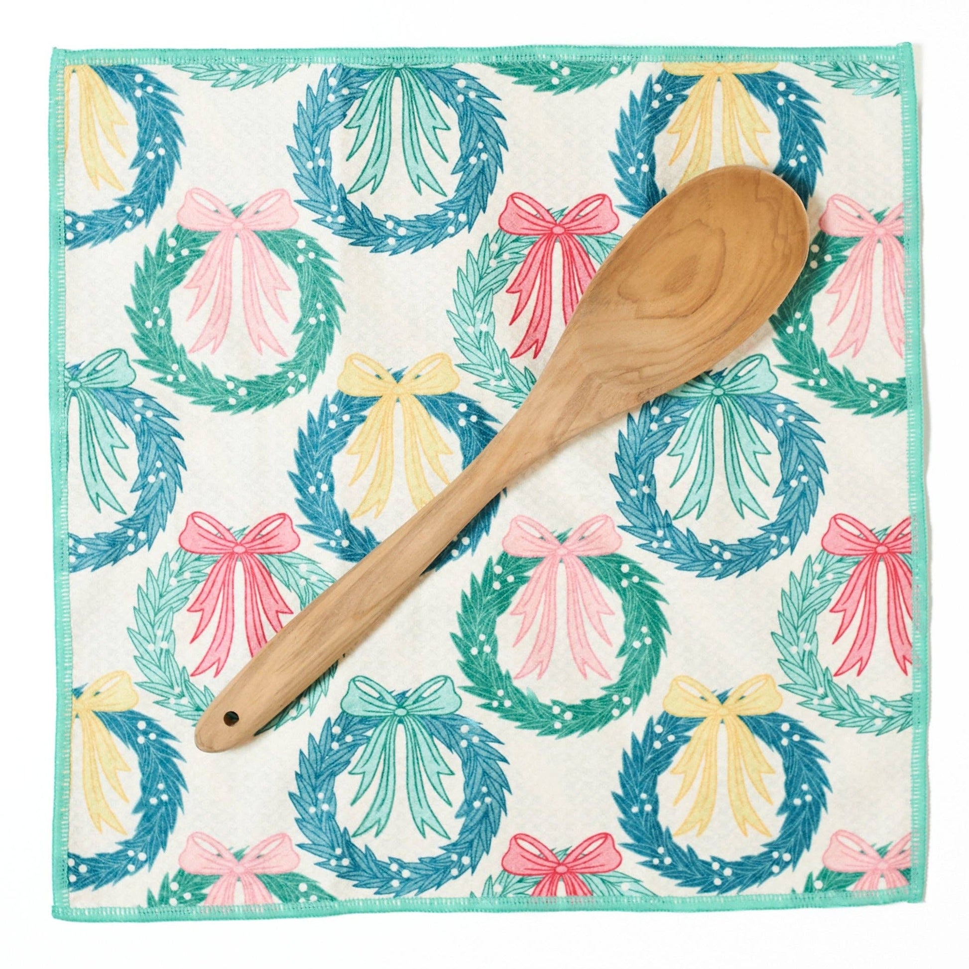 Style: Rebecca Jane Woolbright’s Neighborhood Holiday wreath design features a delightful combination of pastels and jewel tones, adding a festive and colorful accent to your home. Perfect uses: Paper Towel Replacement, Dishcloth, Washcloth or Casual Napkin. Recycled Impact: 3 bottles were Recycled in making this Set. Dimensions: 13"x13". Reversible: Yes. Includes: Set of Three with Hanging Loops. Material: Made with Certified Recycled Post-Consumer Materials. 80% Recycled Polyester, 20% Polyamide. Care: Machine Wash, No Bleach, No Fabric Softener, Tumble Dry.