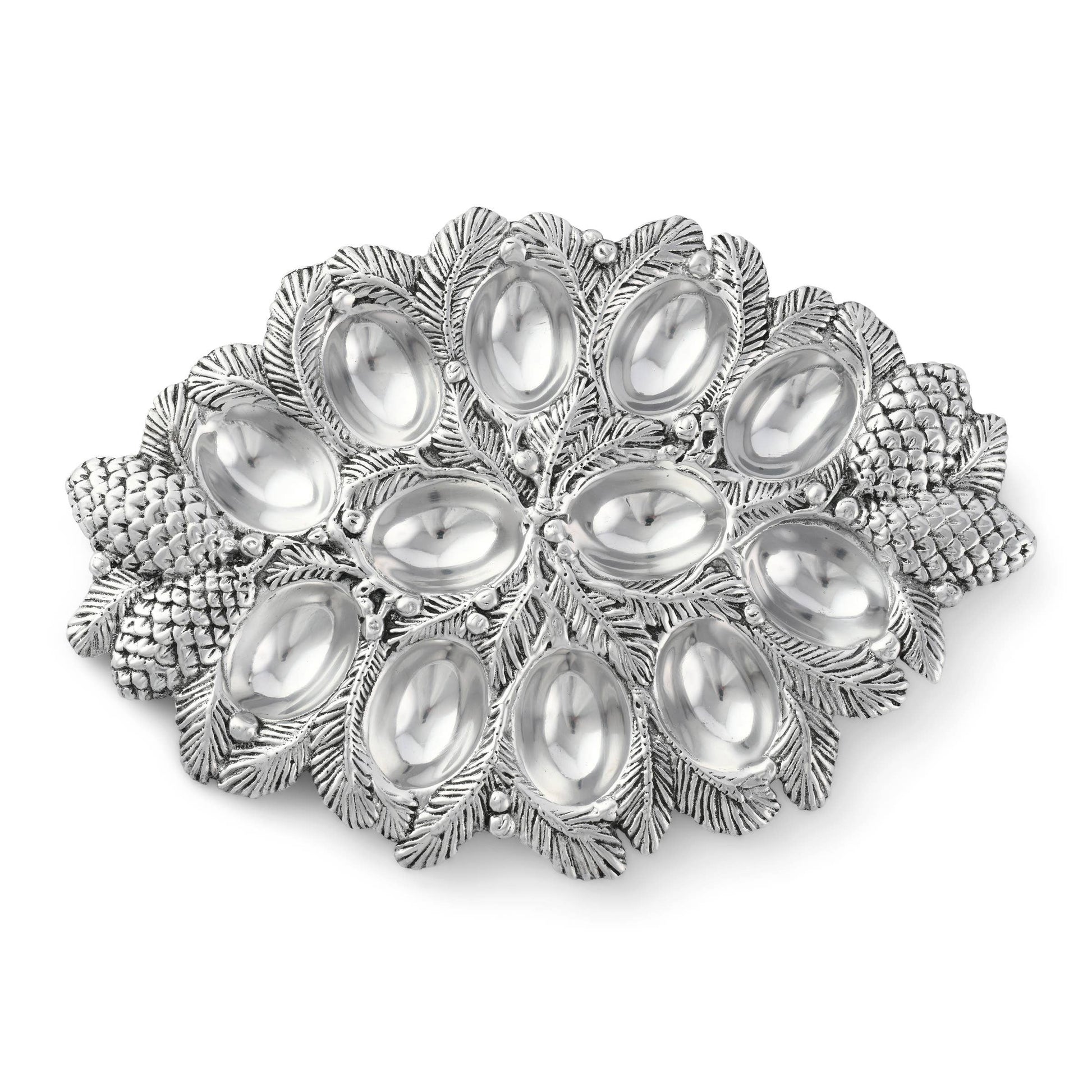 Add an eggstra-special touch to your holiday tablescape with this forest-themed deviled egg server. Our rustic pinecone platter is the perfect accessory for your family's Thanksgiving and Christmas festivities, conveying feelings of comfort and warmth. This lightweight, tarnish-proof aluminum server is easy to pass around. Whether you're whipping up your legendary classic deviled eggs or splurging with toppings of bacon, caviar, truffles or shrimp — this crowd-pleasing presentation ups your egg game.