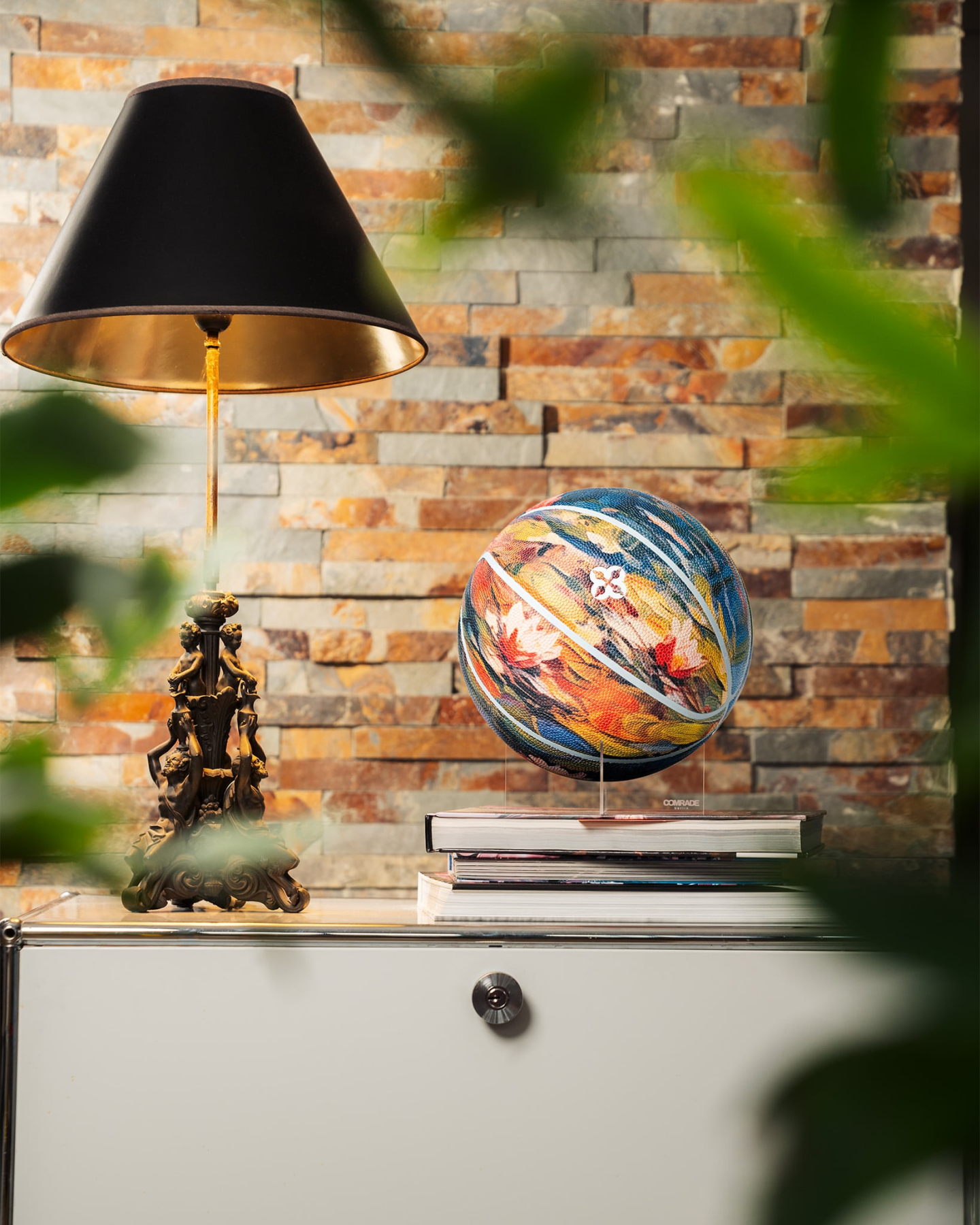 Just as waterlilies have inspired some of the most significant masterworks in art history, the Waterlilies Ball offers a contemporary, athletic tribute to the impressionist tradition. This edition features a composition of soft wash tones that roughly resemble the flora found on our favorite lakes in the Berlin outskirts. It is a piece defined by fluid movement and painterly depth, capturing the serene, reflective quality of the water’s surface. The intentional use of blurred edges and a muted palette makes this ball an interesting visual study in composition, bridging the gap between a gallery-grade painting and a modern design object. It is a sophisticated choice for those who appreciate art history and the quiet beauty of the Brandenburg landscape.